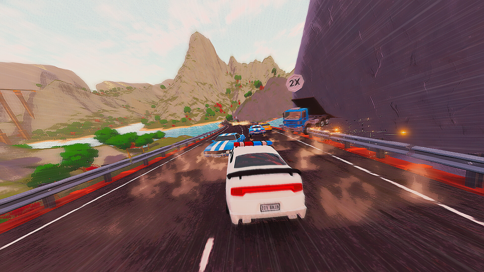 Smash streetlights, billboards, barrels, and barricades. Every hit drives your points higher.